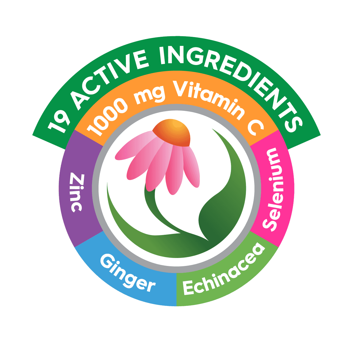 Including Zinc, Ginger, Echinacea, Selenium plus a burst of Vitamin C.1